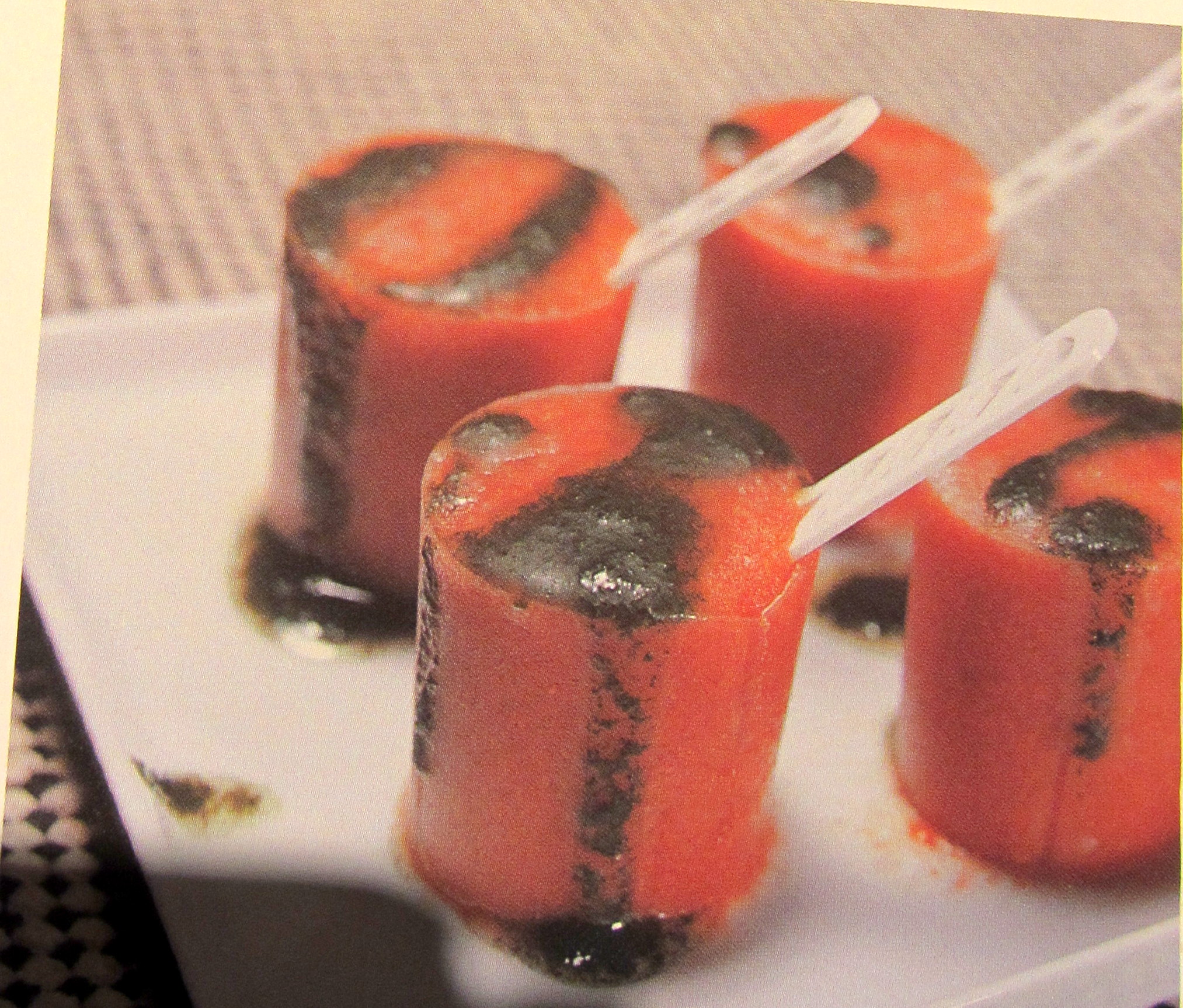 Cojes de la nevera el tetrabrick de gazpacho, lo viertes en la cubitera donde normalmente haces hielos, les pones un palito de polo a cada uno. Cuando ya están hechos, los desmoldas con cuidado, los emplatas y les añades por encima un poco de aceite de albahaca, de guindilla o de cilantro y listo.