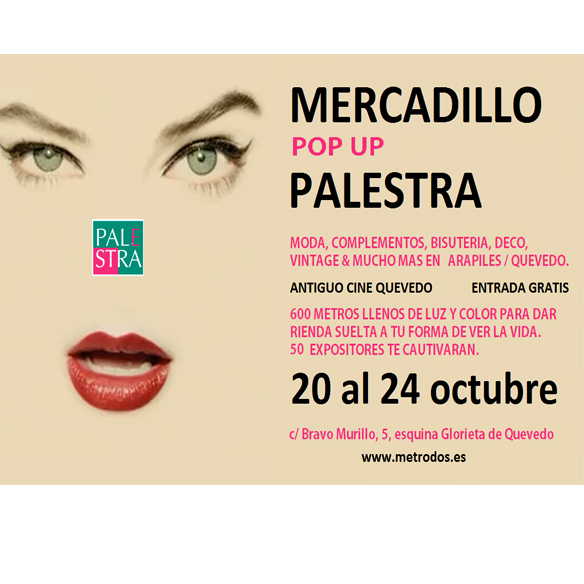 CartelEste Espacio Solidario está incluido dentro del Mercadillo Pop Up Palestra. Calle Bravo Murillo, 5 esquina Glorieta de Quevedo (antiguo cine Quevedo).