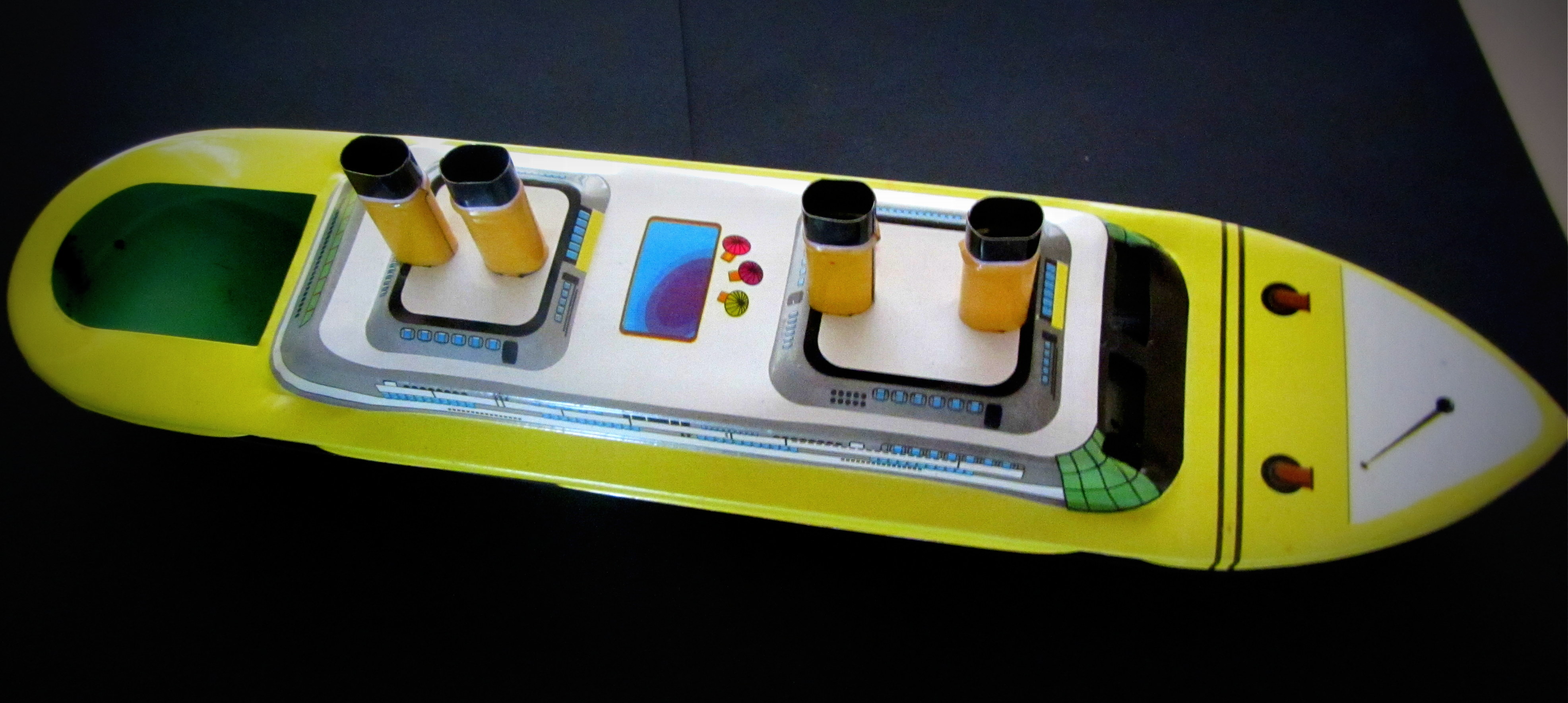 Otro juguete con encanto podría ser este barco de hojalata propulsado por la llama de una mecha mojada en aceite de oliva.