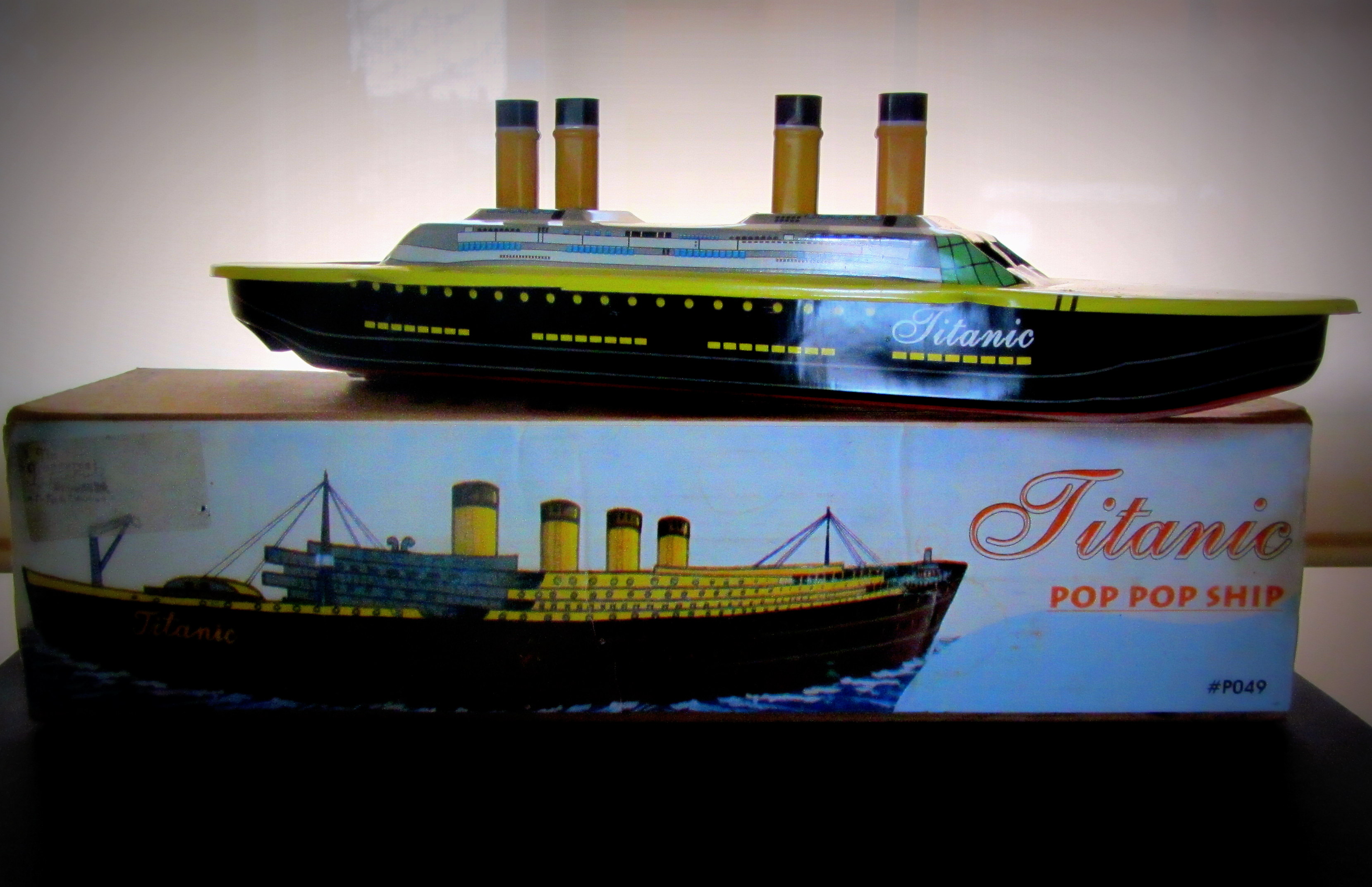 Es una reproducción del Titanic pero este NO se hunde. Puede navegar por estanques y piscinas. Es una pieza que he encontrado en un mercadillo navideño en Majadahonda.
